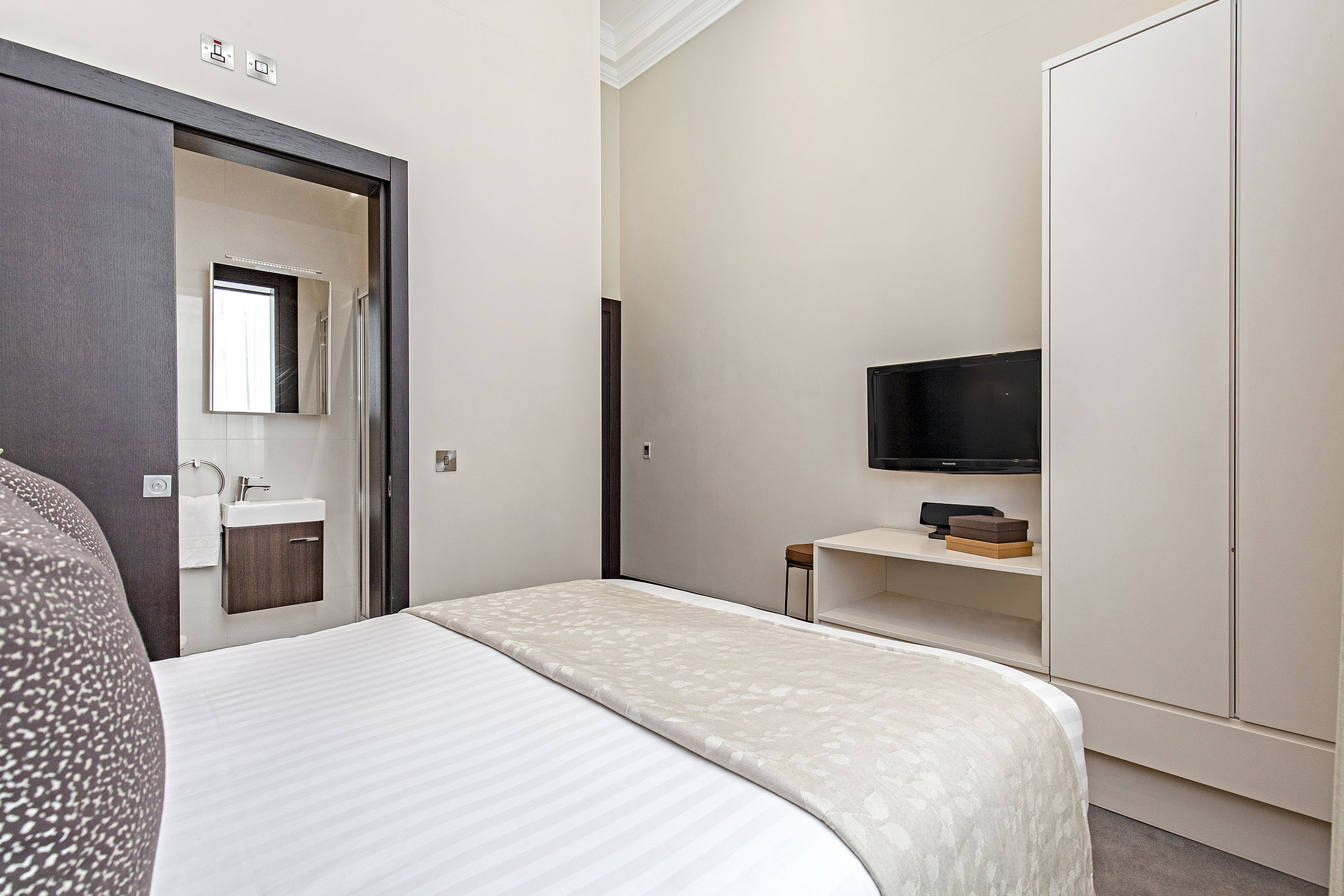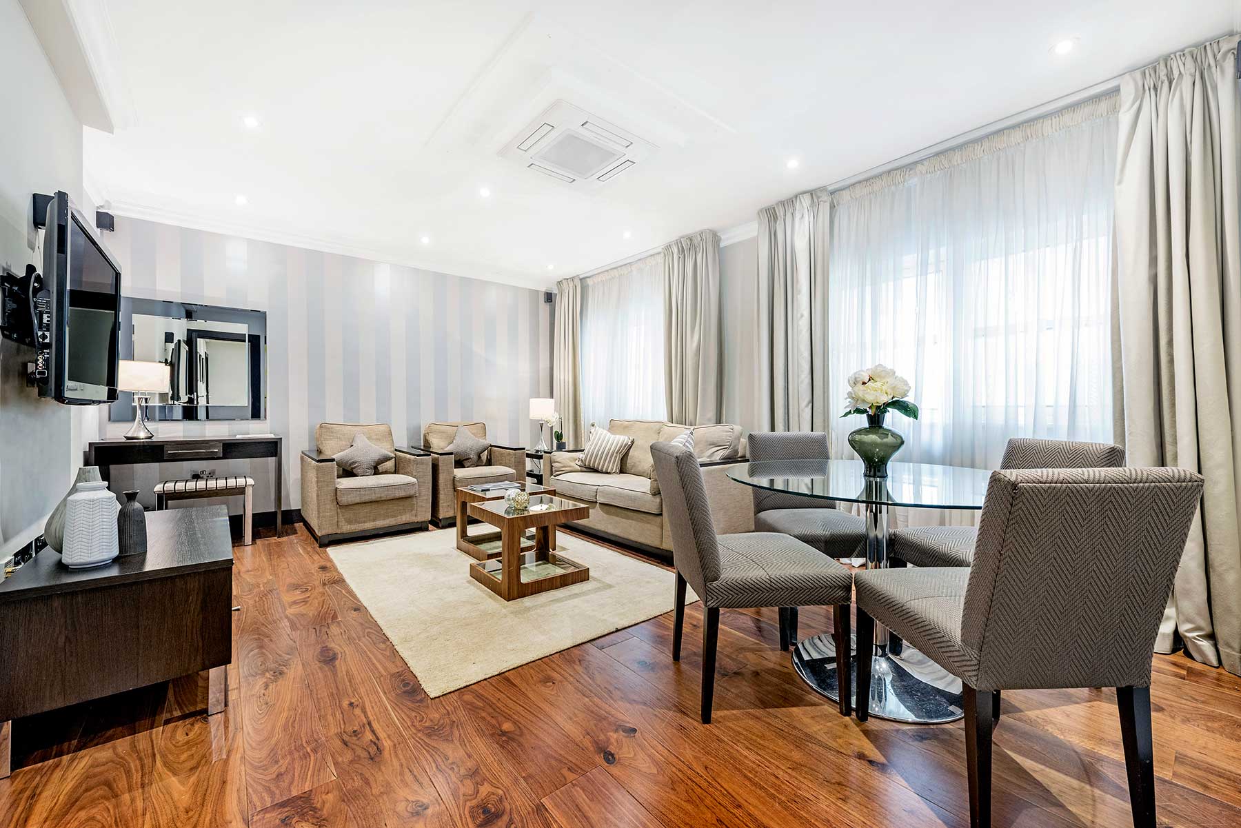 The 50 luxury serviced apartments range from spacious Studios to One, Two and Three Bedroom accommodations and for the ultimate in luxury: two Four Bedroom Penthouse Suites with private lift access. All the apartments are designed to maximise light and furnished in an elegant, international style to provide uncluttered modern accommodation solutions for business or leisure visitors requiring short or long stay accommodation.