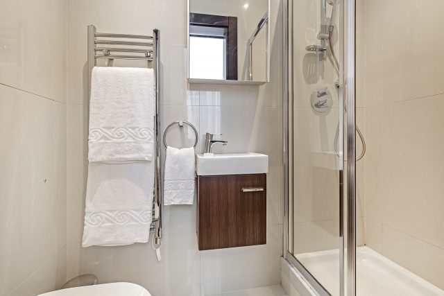The apartment includes one en-suite Bathroom with a power shower and a second bathroom with a Jacuzzi bath.