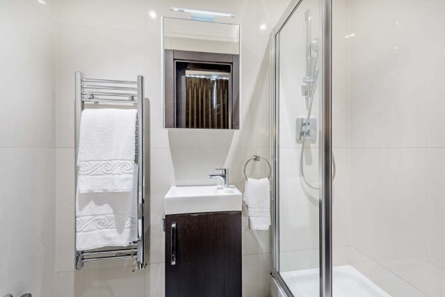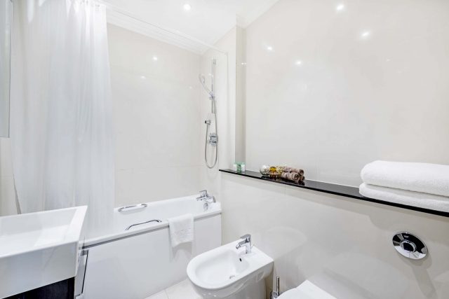 130 Queen’s Gate offers 2 Superior Three Bedroom apartments with exceptional space and light and high ceilings, ideal for families and stay accommodations. The apartment is located on the Ground Floor and features a bright, spacious Living/Dining area that includes a sofa bed and premium audio-visual equipment, and the modern kitchen is fully equipped with high-quality appliances, including a Nespresso coffee machine. All three bedrooms are fitted with a King-size bed and built-in cupboards for storage. The Master Bedroom includes an en-suite bathroom and one further bathroom is fitted with a bath and power shower.
